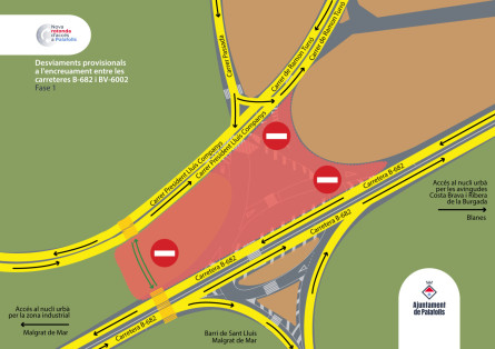 L'Ajuntament de Palafolls informa que el Departament d'Infraestructures de la Generalitat de Catalunya iniciarà, aquest dijous, les obres de remodelació de l'encreuament entre les carreteres B-682 i BV-6002 a Palafolls. La principal actuació és la construcció d'una nova rotonda, per millorar la canalització i la seguretat del trànsit. Les obres tenen un termini d'execució previst de 10 mesos. El consistori ha convocat una reunió oberta a la ciutadania per demà dimecres, a les 18.30 hores a l'Ajuntament, per explicar el projecte i les afectacions a la via pública que es produiran en els propers mesos. Quins canvis es produiran? La circulació tindrà afectacions a nivell de: Altres afectacions a la via pública Les obres de la nova rotonda també comportaran canvis pel que fa a les illes de residus i el transport públic. Els actuals contenidors del carrer de Ramon Turró es traslladaran més amunt en el mateix carrer, propers al següent pas de de vianants. Pel que fa als autobusos, la parada de bus Ramón Turró-Sindicat de les línies 622 i 625 de Sagalés s'anul·larà durant el transcurs de les obres. S'habilitarà una nova parada a l'avinguda Costa Brava, a l'alçada del carrer Montseny.